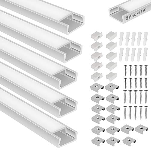 Kefflum Profilo a LED da 5 metri (5 x 1 metro), in alluminio, rettangolare, per strisce di luci a LED, larghezza tagliabile, con tappo terminale, clip di fissaggio, adatto per strisce LED fino a 11 mm