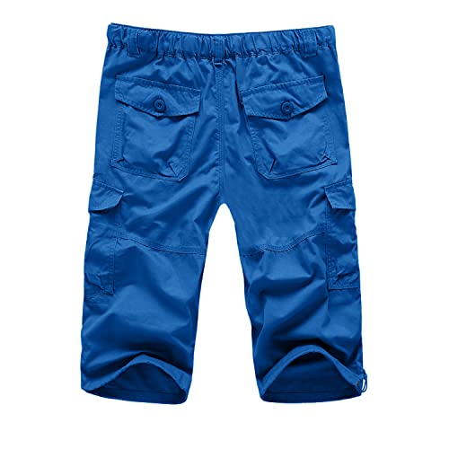 KEFITEVD Casual Twill Elastico 3/4 Cargo Shorts Loose Fit Multi-Pocket Capri Pantaloni corti lunghi, Blu reale, W34