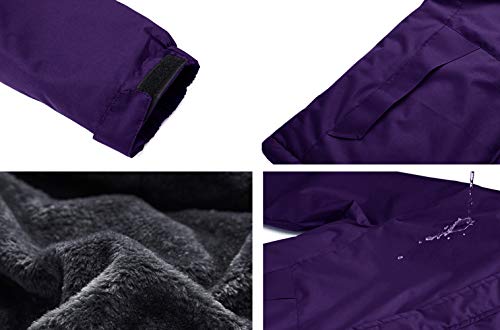 KEFITEVD Giacca funzionale da donna, calda foderata, con cappuccio rimovibile, impermeabile e impermeabile, viola scuro, XXL