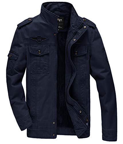 KEFITEVD Giacca invernale da uomo in pile caldo Cargo Stand collare militare addensare giacche di cotone cappotto, blu navy, XXXL