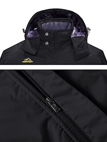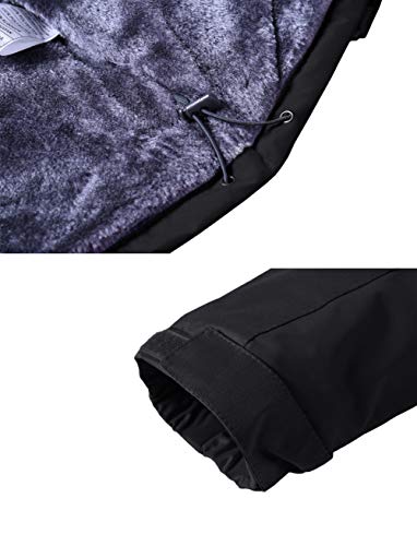 KEFITEVD Giacca invernale da uomo, impermeabile, calda foderata, giacca da sci invernale, antivento, traspirante, con cappuccio rimovibile, Nero., XXL