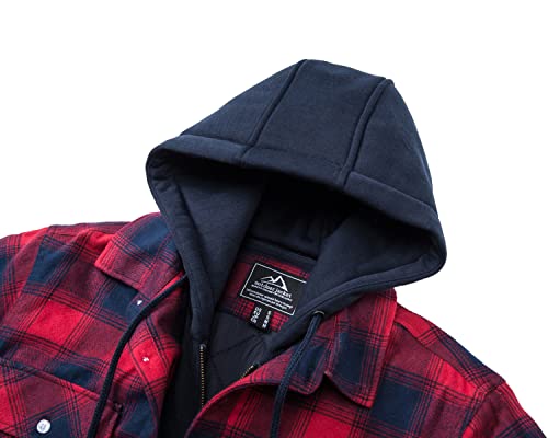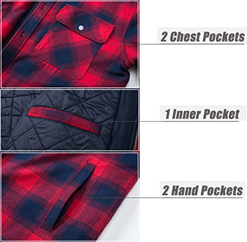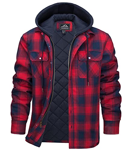 KEFITEVD Giacca da uomo Lumberjack con cappuccio staccabile invernale caldo con cappuccio trapuntato foderato in flanella, Rosso, S