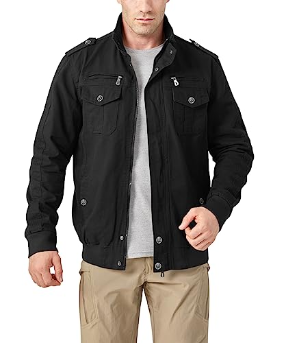 KEFITEVD Giacca Transition Jacket da Uomo Cargo Spring Flight Jacket Tasca Interna Cerniera Pilota Parker Caldo Antivento Nero 2XL