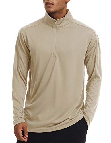 KEFITEVD Polo da uomo a maniche lunghe con cerniera a 1/4, da trekking, sport, corsa, safari, con tasca cachi S