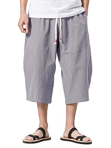 KEFITEVD, pantaloni da uomo a 3/4 in cotone e lino, pantaloni per il tempo libero con 2 tasche, pantaloni Capri, comodi, traspiranti grigio. 46