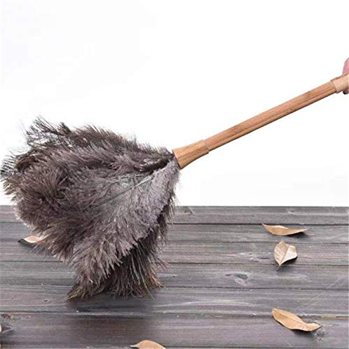Keifen Piumino Strumento per la Pulizia della casa con Manico in Legno per spolverino di Piume di Struzzo Naturale soffice