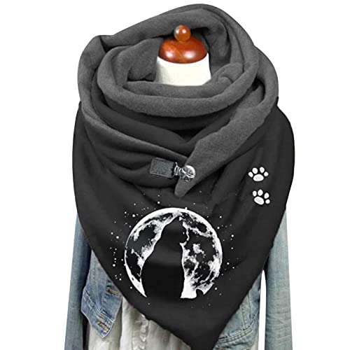 KEIZHUONIQIU Sciarpa Donna Stampa Gatti Caldo Bottone Moda Turbante Wrap Sciarpa Invernale Foulard Foulard, Nero, Taglia unica