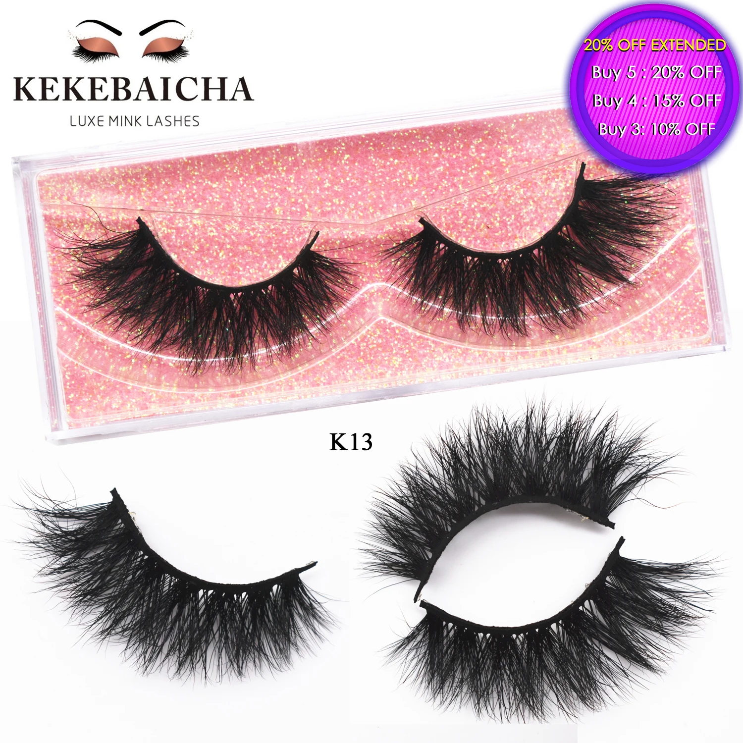 KEKEBAICHA 3D Mink False Eyelashes Natural Wispy Fluffy Dramatic Volume Fake Lashes Extension Handmade Cruelty-free Eyelash K13