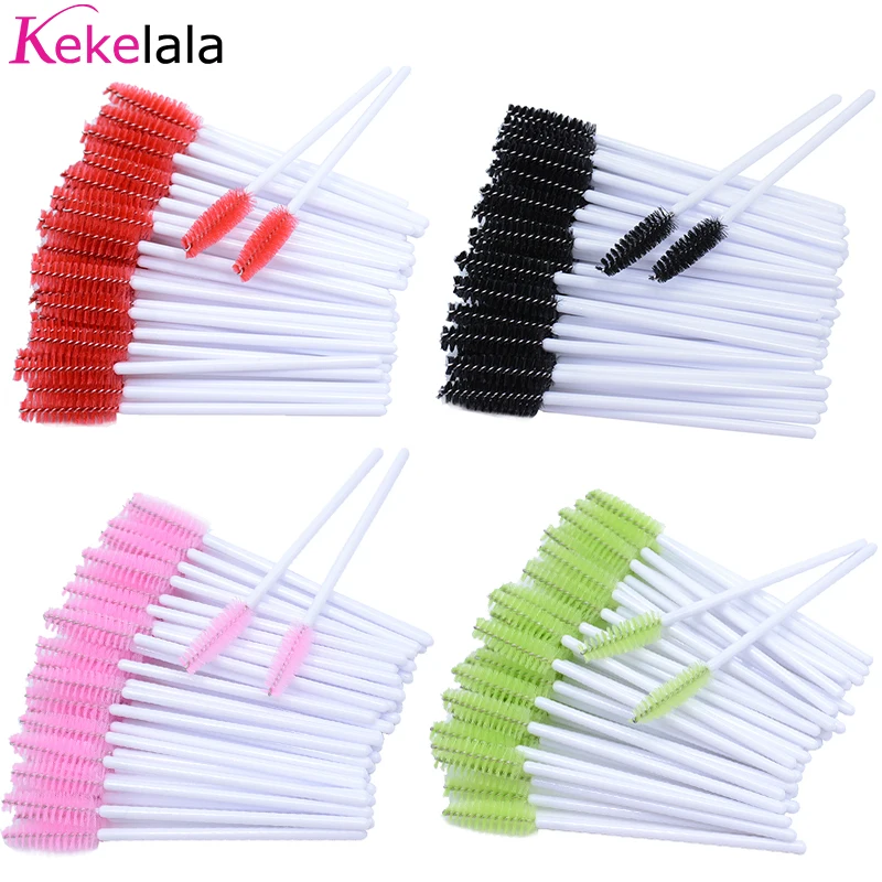 Kekelala 50PCS White Pole Colorful Micro Eyelash Applicators Mini Lash Comb Brush Cilia Mascara Wands for Eyelash Extension