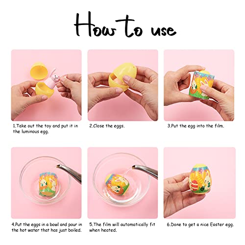Materiale sicuro: i nostri adesivi termorestringenti sono tutti realizzati in materiale PET e agenti fluorescenti. L'uovo di Pasqua è realizzato in plastica di qualità, atossica e sicura, robusta e durevole, non devi preoccuparti di essere rotto, può essere utilizzato per un lungo periodo di tempo.