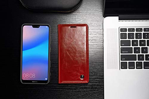 KelaSip Custodia Huawei P20 Lite Custodia per Cellulare Stile del Libro Magnetico Spento Portafoglio in Pelle con Slot per Carta di Credito con Funzione di Supporto, Rosso
