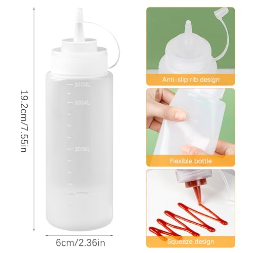 Keleily 5Pezzi Flacone Dosatore con Tappi 350ml Dispenser di Condimenti in Plastica per Condimenti, Ketchup, Senape, Maionese, Olio doliva, Trasparente,12Oz