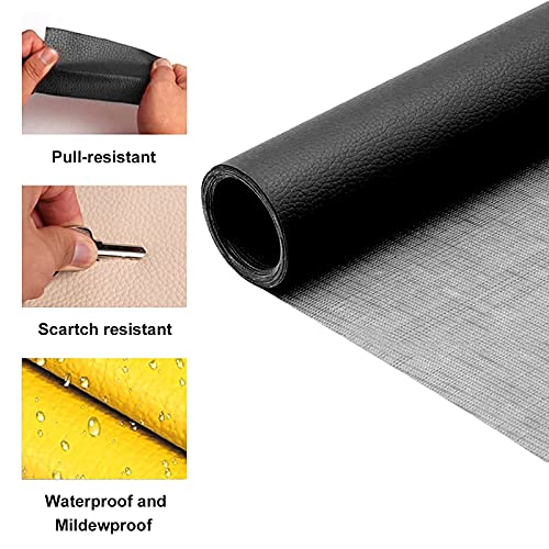 KELEOINA Patch Di Riparazione In Pelle, Toppa In Pelle, Kit di riparazione autoadesivo in pelle, per divani, sedili dell'auto, fori fissi, strappi, bruciature, macchie, 13,7 x 53,9 inch (Nero)