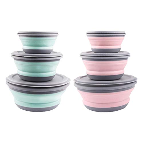 Kelisidunaec Ciotola pieghevole con coperchio, 3 pezzi, in silicone, portatile e pieghevole, per campeggio, escursioni, cucina, scuola all'aperto
