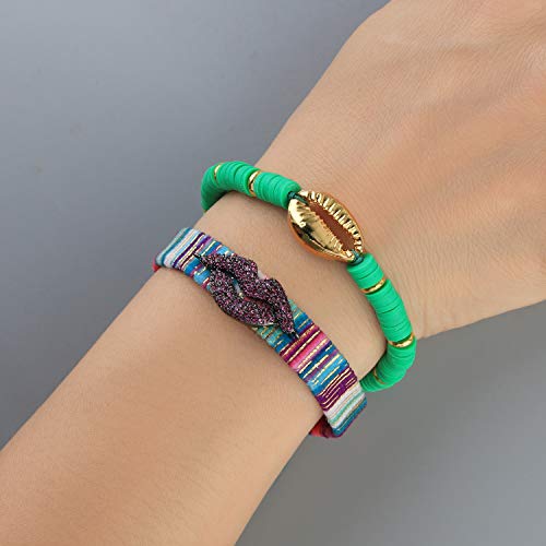 KELITCH - Bracciale per uomo e donna, con strass, realizzato a mano, intrecciato, per amicizia, con corda, per ragazze e metallo dorato., colore: Labbra rosse., cod. AZXK-189003F
