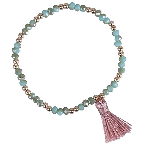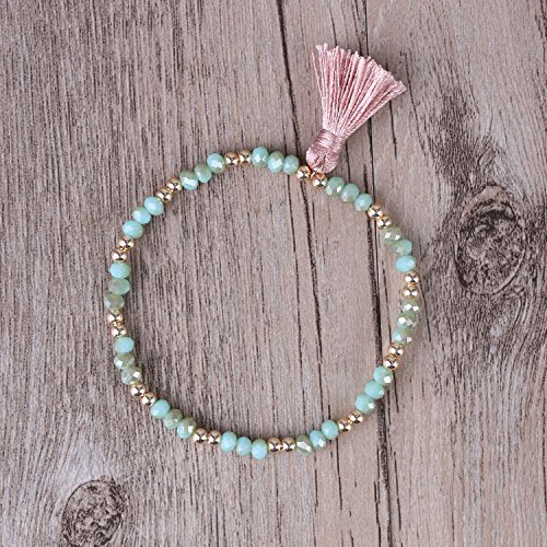 KELITCH Braccialetti Elastici con Perline di Cristallo Braccialetti dell'Amicizia con Nappe Adorabili Braccialetti Estivi (Verde A)