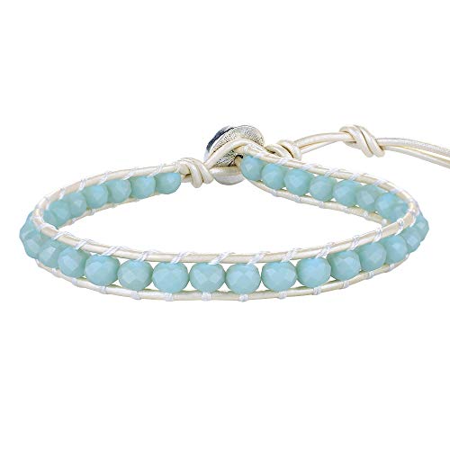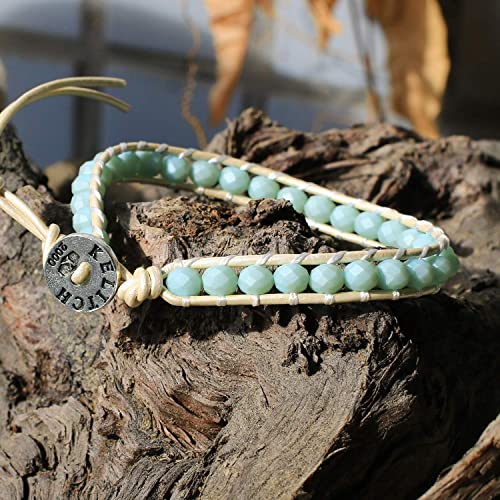 KELITCH Braccialetti con perline in Labradorite da donna bracciale avvolgente impilabile in cristallo bracciale in pelle con ciondolo per donna