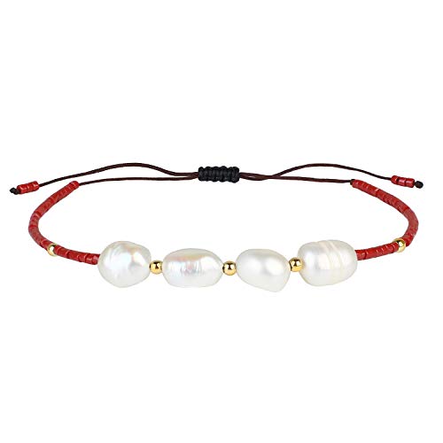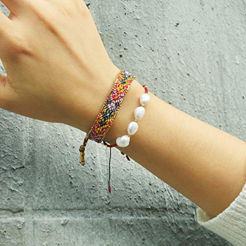 Realizzato a mano con amore: il braccialetto in stile stravagante è intrecciato con perle d'acqua dolce e perline di semi e possiede un nodo scorrevole regolabile per adattarsi a polsi di tutte le dimensioni fino a 24 cm di lunghezza, senza doversi preoccupare delle dimensioni.