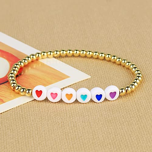 KELITCH Bracciali con Perline Dorate Bracciali Elasticizzati A Filo Singolo Fatti A Mano Motivo A Colori Chic Bangle (Cuore 11A)