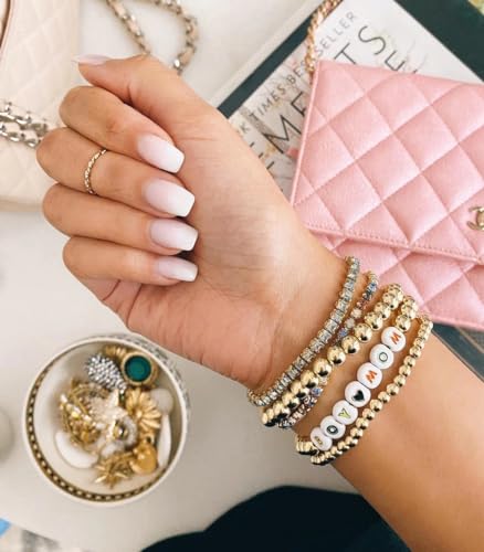 KELITCH Bracciali con Perline Dorate Bracciali Elasticizzati A Filo Singolo Fatti A Mano Motivo A Colori Chic Bangle (Boy Love Mom)