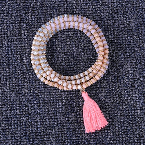 KELITCH Collana da donna con nappe elasticizzate collana fatta a mano con catene di perle di cristallo argento