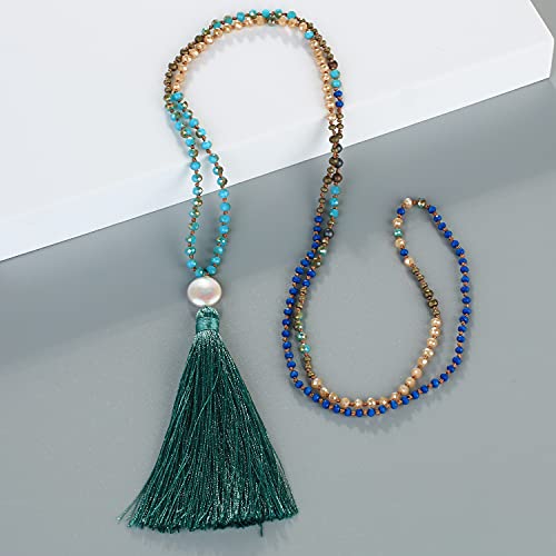 KELITCH Collana con nappine di perle da donna collana con ciondoli di perle di cristallo bella collana lunga con nappe