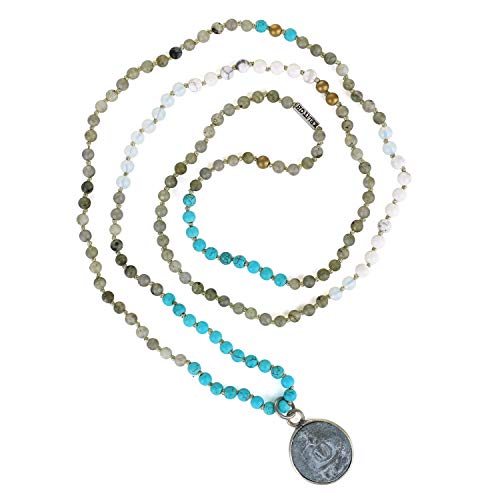 KELITCH Collana con perline di agata turchese naturale collana con ciondolo Buddha in argento 925 collana con amuleto Somdej