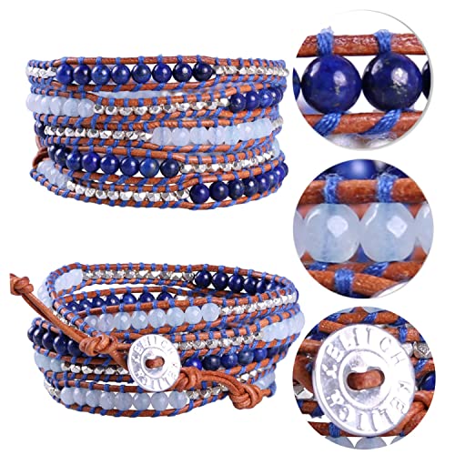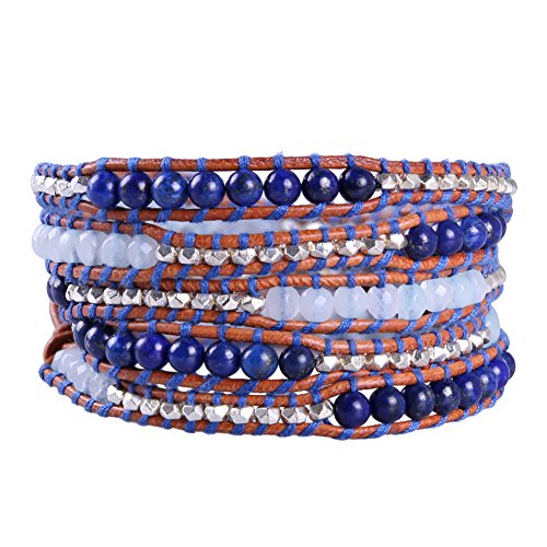 KELITCH Lapis Lazuli Pietra, Bianca Agata Sezionato 5 Wrap Bracciale - Marrone Pelle