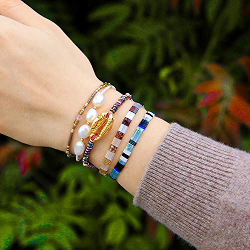 KELITCH Nuovi Braccialetti Conchiglia Bracciale Con Perline Di Perle Braccialetti Con Ciondoli Regolabili Fatti A Mano