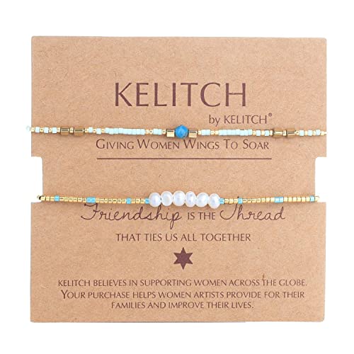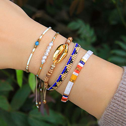 KELITCH 2 Pezzi Braccialetti Di Perline Di Semi Braccialetti Di Amicizia Braccialetti Di Perle Di Cristallo Colorato Perline