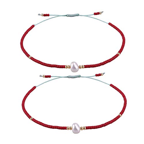 KELITCH 2 pezzi da Donna Miyuki Perline Bracciali Regolabili Boho Braccialetti di Amicizia Nuovi Braccialetti di Perle Set di Gioielli (01O)