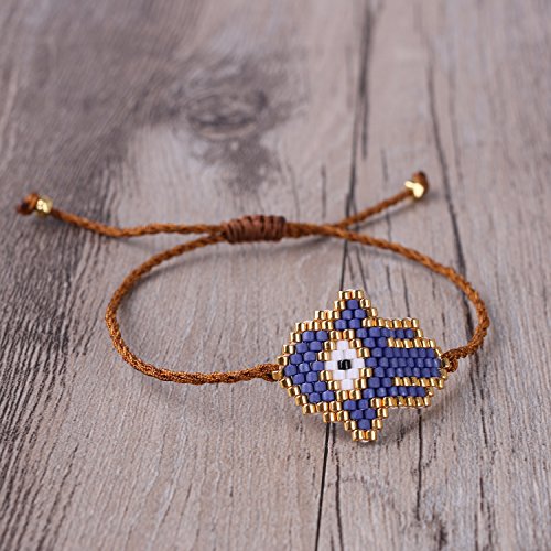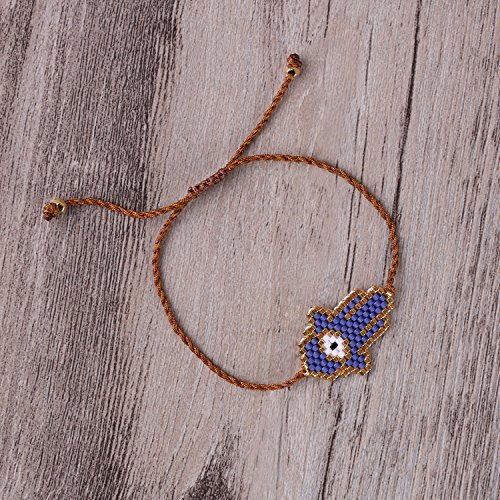 KELITCH Rocailles Pelle Fatto a Mano Intrecciato Hamsa Amicizia Bracciale - Buio Blu