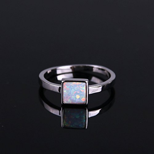 KELITCH Solitario Bianca Piazza Creato Opale Le Signore Anelli Argento 925 - Dimensioni (USA) 7 / (IT) 14, 15