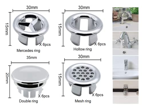 Kellegour 24 Pezzi Tappo Anello Troppopieno Lavello Anello Troppopieno Rotondo Coperchio,Tappi e Accessori per Lavandino e Lavello,Tappo Troppo Pieno Quattro Stili,per Foro Troppopieno Bagno,Cucina