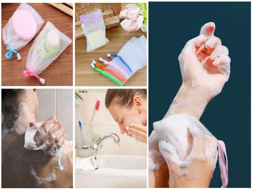 Multifunzionale: Ogni set di sacchetto per sapone e spugna da doccia sono molto adatti per nuotare, lavarsi le mani, fare la doccia e radersi. È adatto per fare schiuma e sapone in schiuma per promuovere ulteriormente il sapore del sapone. Adatto per la maggior parte del sapone.