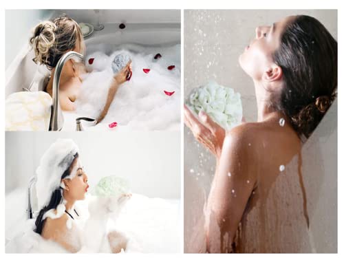 Facile da Usare: Il design a reticolo di questo set di sacchetto per sapone e spugna da doccia può produrre schiuma ricca e morbida. Lo sporco rimuove efficacemente lo strato corneo del viso e del corpo, ma non danneggia la pelle.