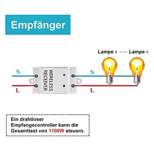 Carico massimo del ricevitore: 1000W Un interruttore può controllare un numero illimitato di ricevitori a portata di man
