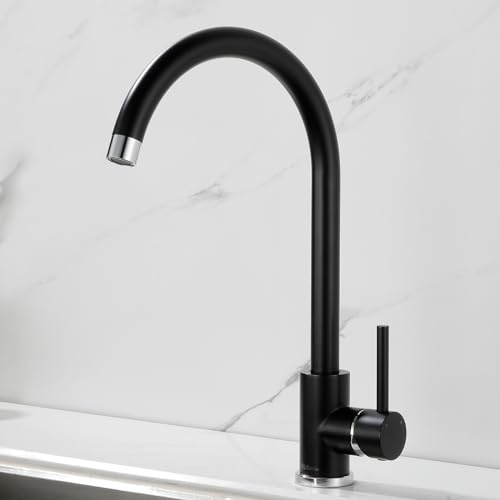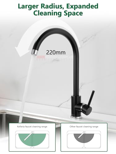 Kelleria Rubinetto Cucina Nero, Rubinetto da Cucina ad Alta Pressione, Rubinetto da Cucina Girevole a 360° con Miscelatore Monocomando, Rubinetto da Cucina in Acciaio Inox