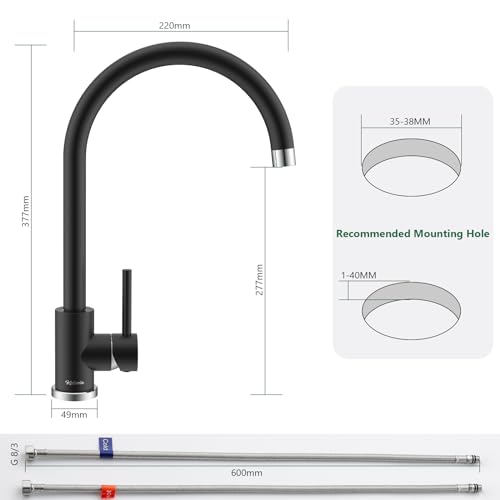 FACILE DA INSTALLARE: Installazione monoforo. Foro di installazione: ø35-38mm. Spessore della piastra di installazione: 1-40mm. L'installazione del rubinetto da cucina è possibile in pochi passaggi (con rinforzo per lavabo incluso). Anche i non professionisti possono installarlo facilmente.
