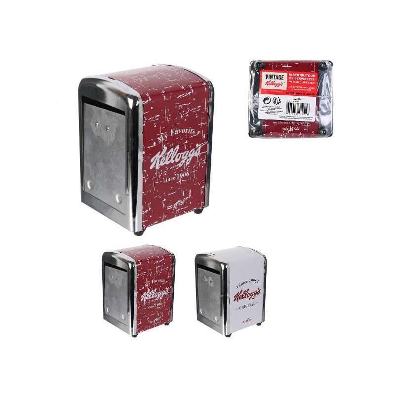 Distributore di tovaglioli - Kelloggs - Design retrò attorno ai famosi cereali! Ideale per dare alla tua tavola un decoro originale! - Distributore in acciaio inox e plastica - Dimensioni: 10,2 x 9,5 x 14,5 cm - Colori assortiti.