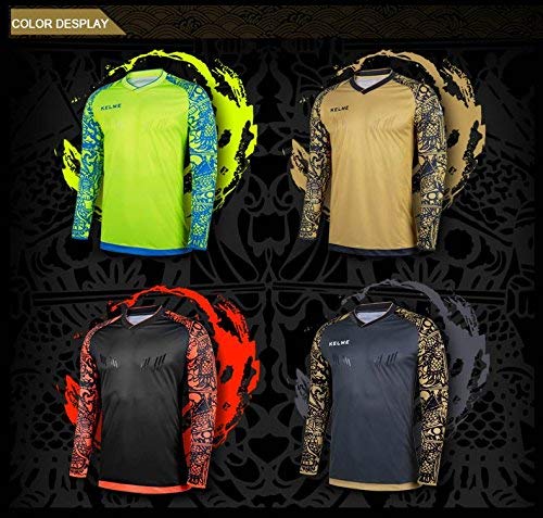 Kelme - Maglia da allenamento professionale per portiere di calcio, con maniche, adatta per l'estate, Uomo, Gray/Gold, S
