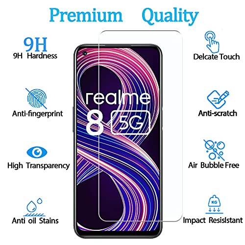 【Protezione per schermo in vetro temperato KELOLIN】: la protezione per schermo KELOLIN con taglio laser di precisione è appositamente progettata per Realme 8 5G (6,5"), la protezione per schermo con una durezza di 9H può proteggere lo schermo HD Anti-Scratch Anti-impronta digitale.