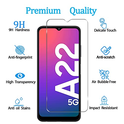 【Protezione per schermo in vetro temperato KELOLIN】: la protezione per schermo KELOLIN con taglio laser di precisione è appositamente progettata per Samsung Galaxy A22 5G, la protezione per schermo con una durezza di 9H può proteggere lo schermo HD Anti-Scratch Anti-impronta digitale.