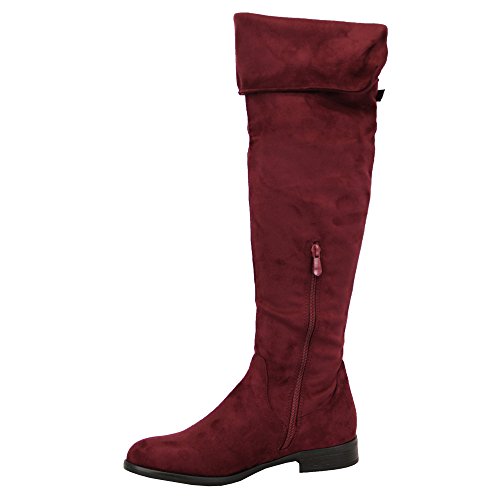 Kelsi Donne Stivali Lungo Sopra al Ginocchio Effetto Scamosciato Scarpe Casual Moda Inverno - Rosso - Y808, 3 UK/36 EU