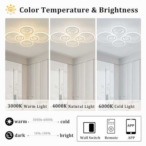 【Regolabile】Il plafoniera led moderno è dotato di funzione di regolazione della luminosità (10%-100%) e della temperatura del colore (3000K-6000K), consentendoti di adattare l'ambiente luminoso alle tue esigenze.