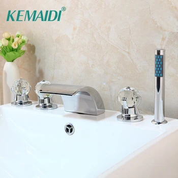 KEMAIDI Deck Mounted 5 Pcs Set Faucet Waterfall Spout With Hand Sprayer Bathroom Tub Faucet Bath Shower Set