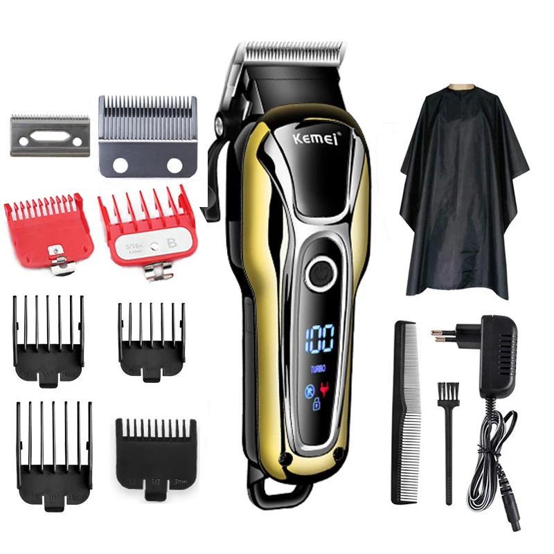 Kemei KM-1990 Professional Hair Clipper LCD Display Cordless Hair Trimmer for Men Electric Shaver Barber Hair Cutting Mower