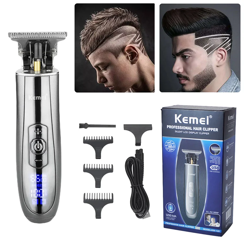 KEMEI Trimmer Carbon Steel Ceramic Blade Shaving Cordless Hair Cutter 45G USB Rechargeable Bald Head Hair Clipper LCD Display