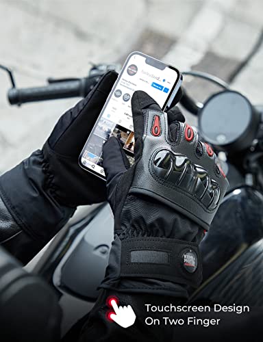 KEMIMOTO Guanti Moto Invernali, Guanti da Moto Uomo Donna, Guanti Moto Antivento Impermeabili Guanti Touch Screen con Nocche Rigide per Motociclista Moto Ciclismo Nero XXL