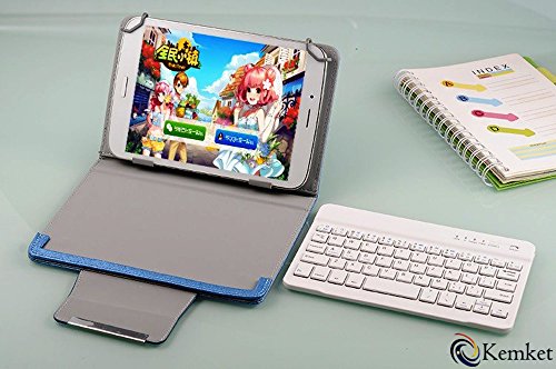 Kemket custodia per tastiera Bluetooth, custodia in pelle per tablet da 17,8 cm, con tastiera Bluetooth staccabile, per Samsung Galaxy Note 8.0/Tab 2 7.0/Tab 3 7.0/Tab 4 7.0/Tab 3 Lite 7/Tab 3 8.0/Tab 4 8.0/Tab Pro 8.4/Tab S 8.4/Acer A1 - 810/W3 - 810/iPad mini/iPad Mini Retina Display/Asus MeMo Pad HD 7/Dell Venue 8 Pro/Nexus 7/Nexus 7 HD / per tablet da 17,8-20,3 cm/supporta Android/iOS/Windows